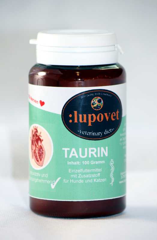 Taurin von LupoVet besteht aus dem Einzelfuttermittel Weissdorn und dem Zusatzstoff Taurin…